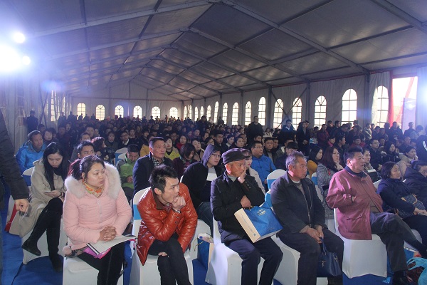 開盤當日,客戶車輛在引導員指引下魚貫而入??拷值纼膳耘牌饤l條長龍,活動帳篷內(nèi)更是人頭攢動,座無虛席,場面十分火爆。本期產(chǎn)品繼續(xù)采用搖號方式予以加推,在限售、限價等政策影響下,六安市場像今天這種熱銷場面已不多見。