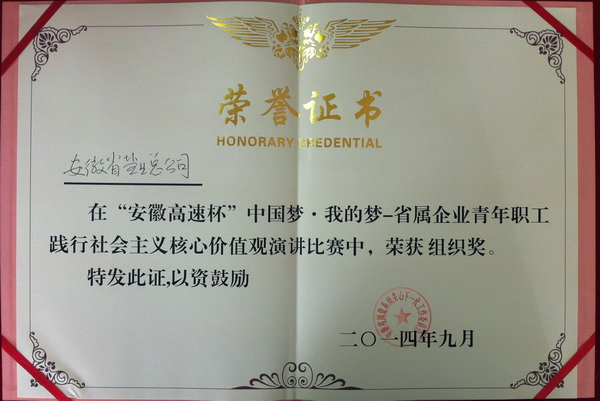 9月26日下午,由安徽省關(guān)心下一代工作委員會(huì)、安徽省國資系統(tǒng)關(guān)心下一代工作委員會(huì)主辦的“安徽高速杯”中國夢·我的夢——省屬企業(yè)青年職工踐行社會(huì)主義核心價(jià)值觀演講比賽決賽,在安徽省高速集團(tuán)隆重舉行。省公司在此次比賽中榮獲集體組織獎(jiǎng),代表省公司參加比賽的廬江縣公司職工柯君憑借雄厚的實(shí)力和精彩的發(fā)揮榮獲個(gè)人一等獎(jiǎng)。