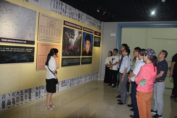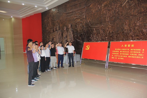 藕塘為抗日戰(zhàn)爭時(shí)期津浦路西革命根據(jù)地中心,素有“小莫斯科”之譽(yù)稱,是我省首批愛國主義教育基地。在莊嚴(yán)肅穆的烈士陵園,全體人員首先在講解員的帶領(lǐng)下依次參觀了藕塘紀(jì)念館的各個(gè)展區(qū),觀看珍貴的文物、文獻(xiàn)、照片等資料,回顧黨的光輝歷程,追尋英雄足跡,緬懷先烈事跡,再次被劉少奇、葉挺、羅炳輝等老一輩無產(chǎn)階級革命家的壯烈事跡所感動(dòng)。隨后來到紀(jì)念館大廳前,全體黨員面對鮮紅的黨旗,重溫入黨誓詞,進(jìn)一步牢固“不忘初心、牢記使命”的政治信念。